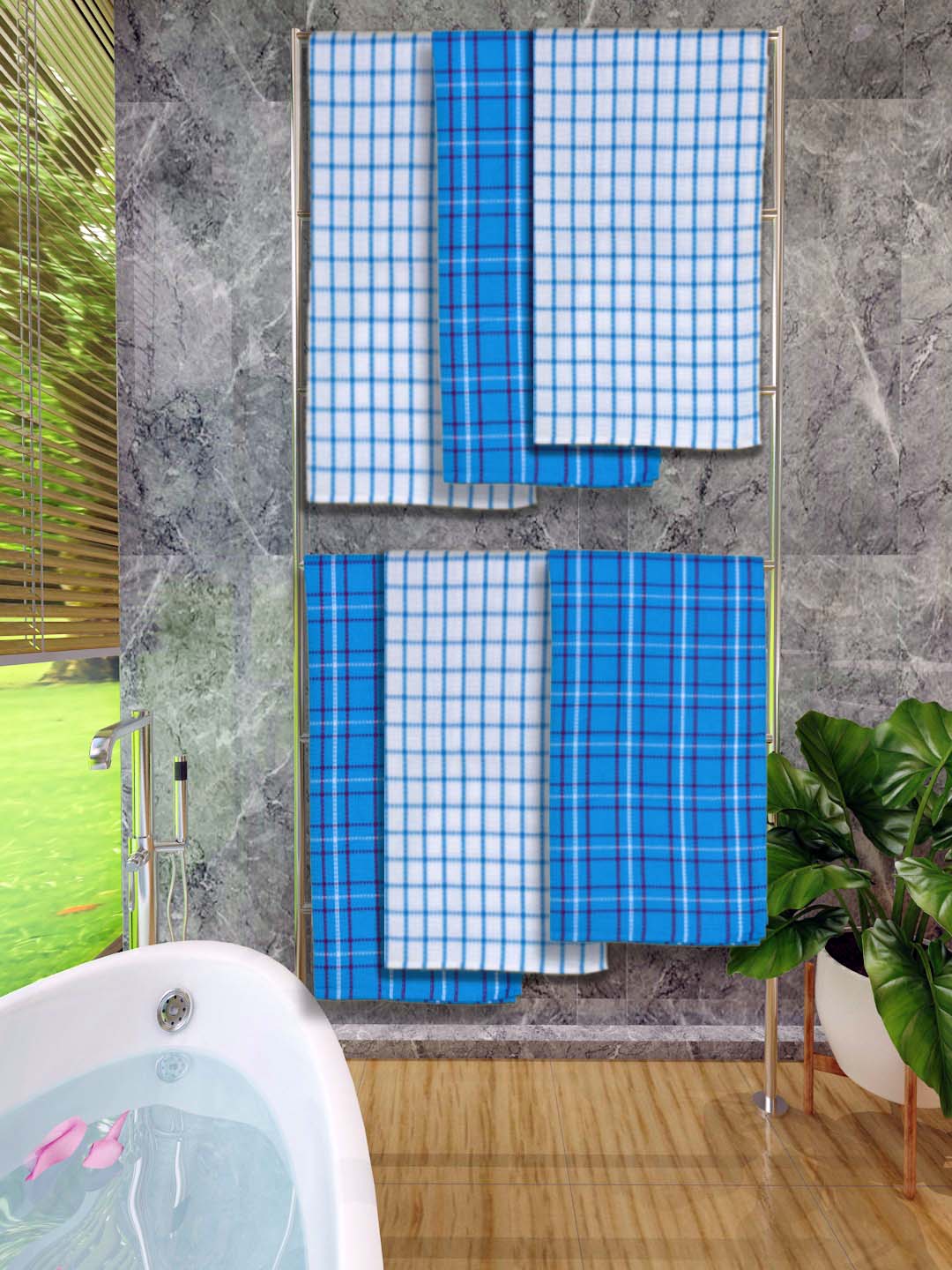 Athom Living Premium Gamcha Bath Towel 65 x 135 cm Pack of 6 Multicolored checkered