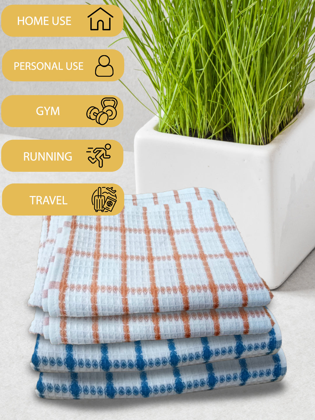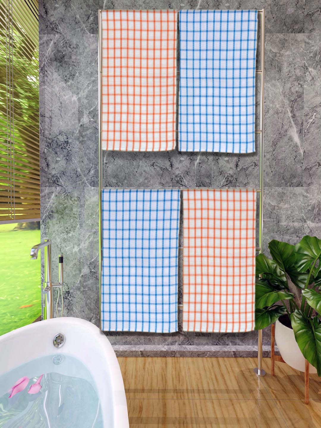 Athom Living Premium Gamcha Bath Towel 65 x 135 cm Pack of 4 Multicolored checkered